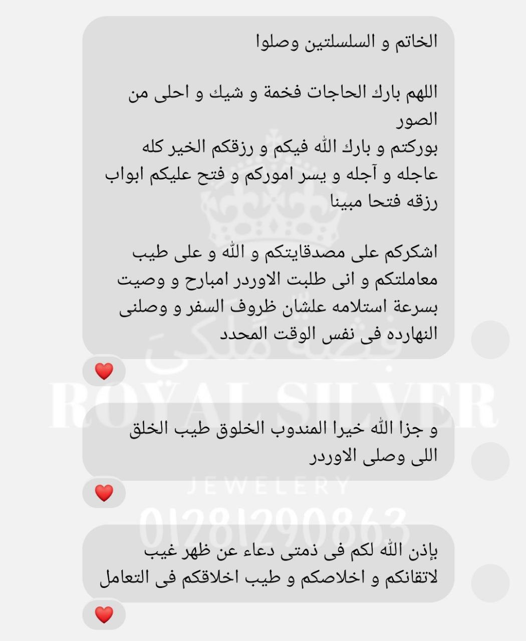 شكرا جدا جدا جدا الخاتم جميل وعجبها جدا والراجل بتاع الشحن كان زي الفل ربنا يوفقكم يارب