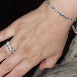 انسيال تنس شداد أنيق متناسق بحجم حر مع خاتم، يتكون من 3 صفوف من أحجار الزركون الماسية.