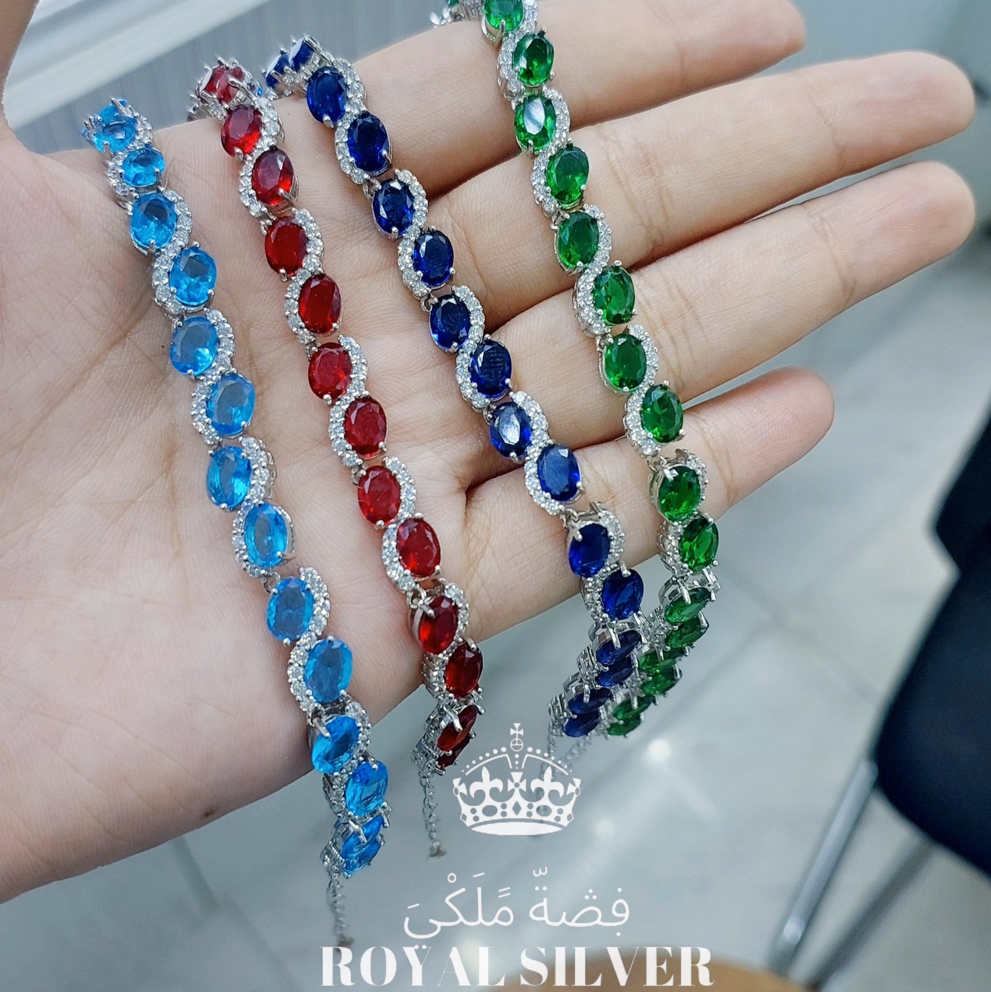 انسيال فاخر أنيق مزين بأحجار زركون لامع - فضة استرليني 925 مرصعة بأحجار زركون زرقاء بحرية/حمراء/زرقاء/خضراء وبيضاء بتلمع شبه الماس.
