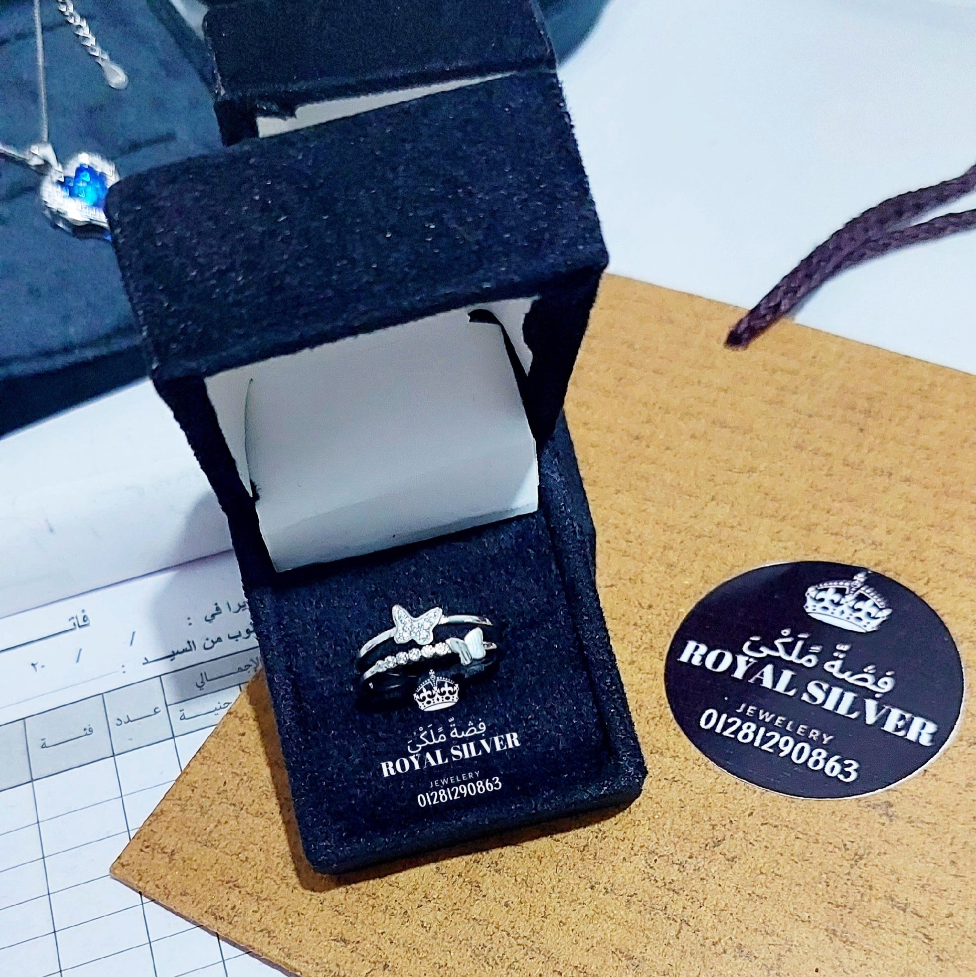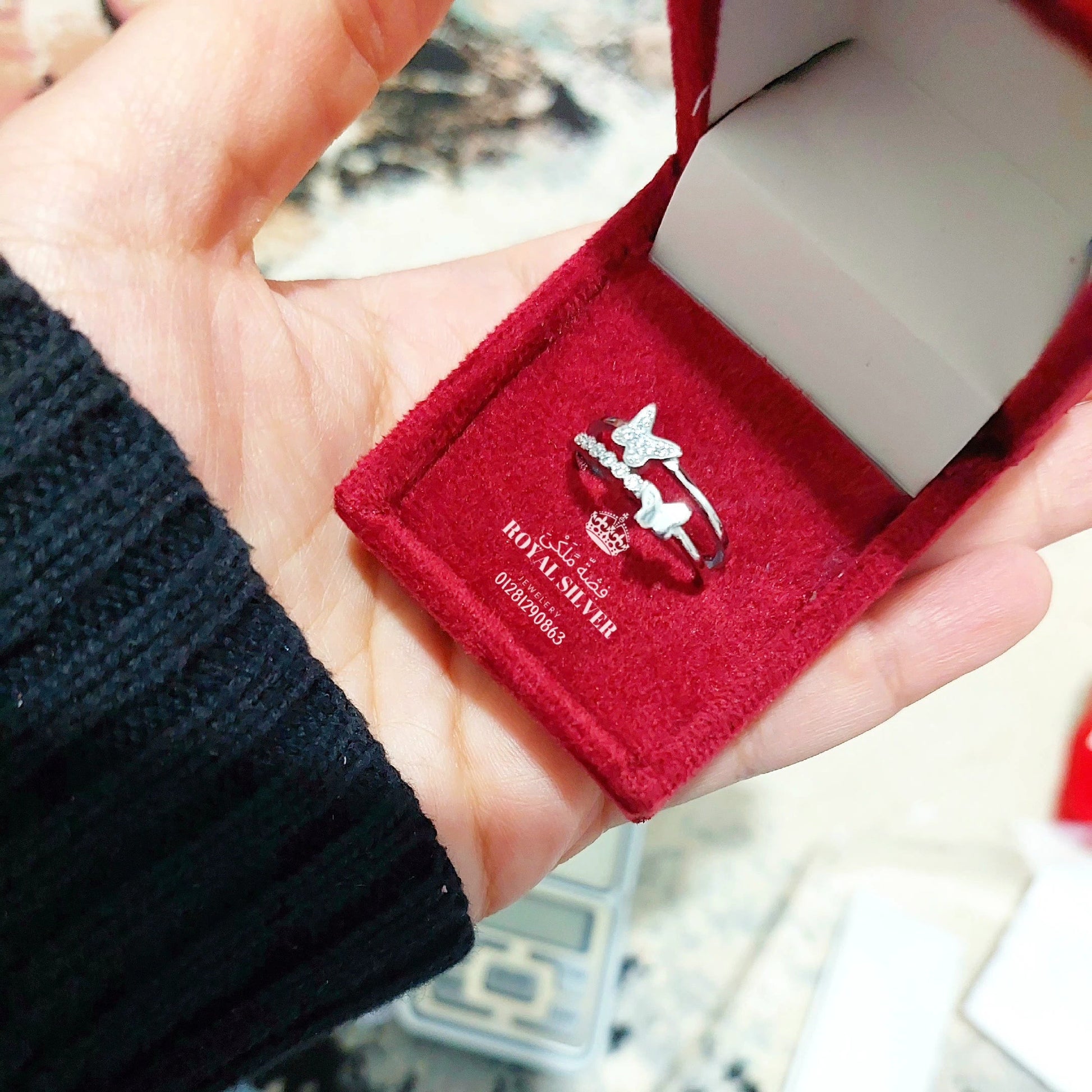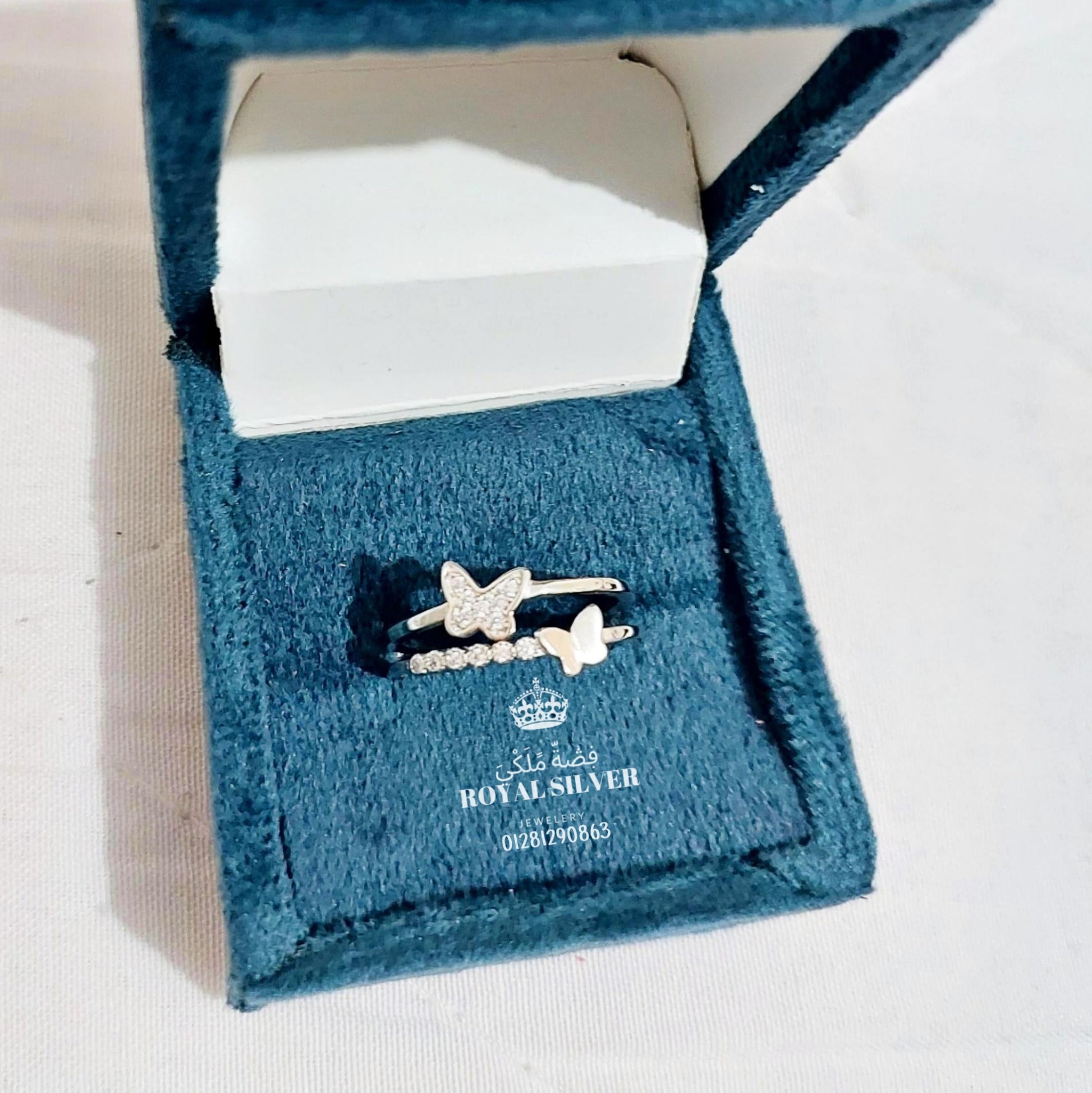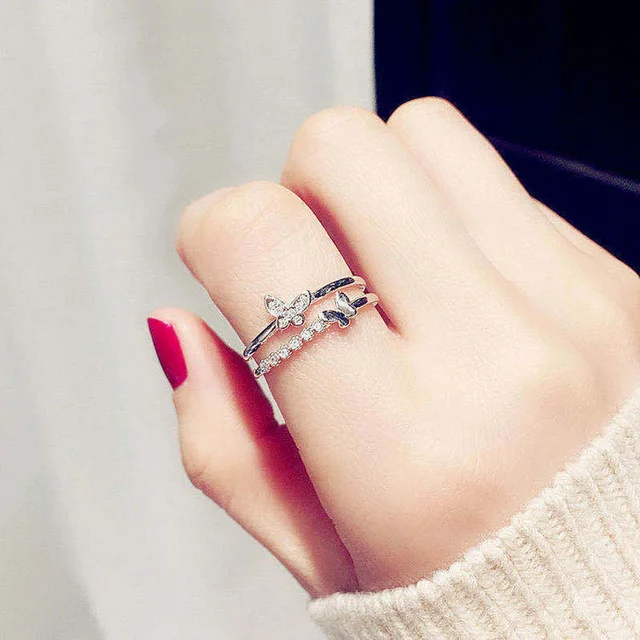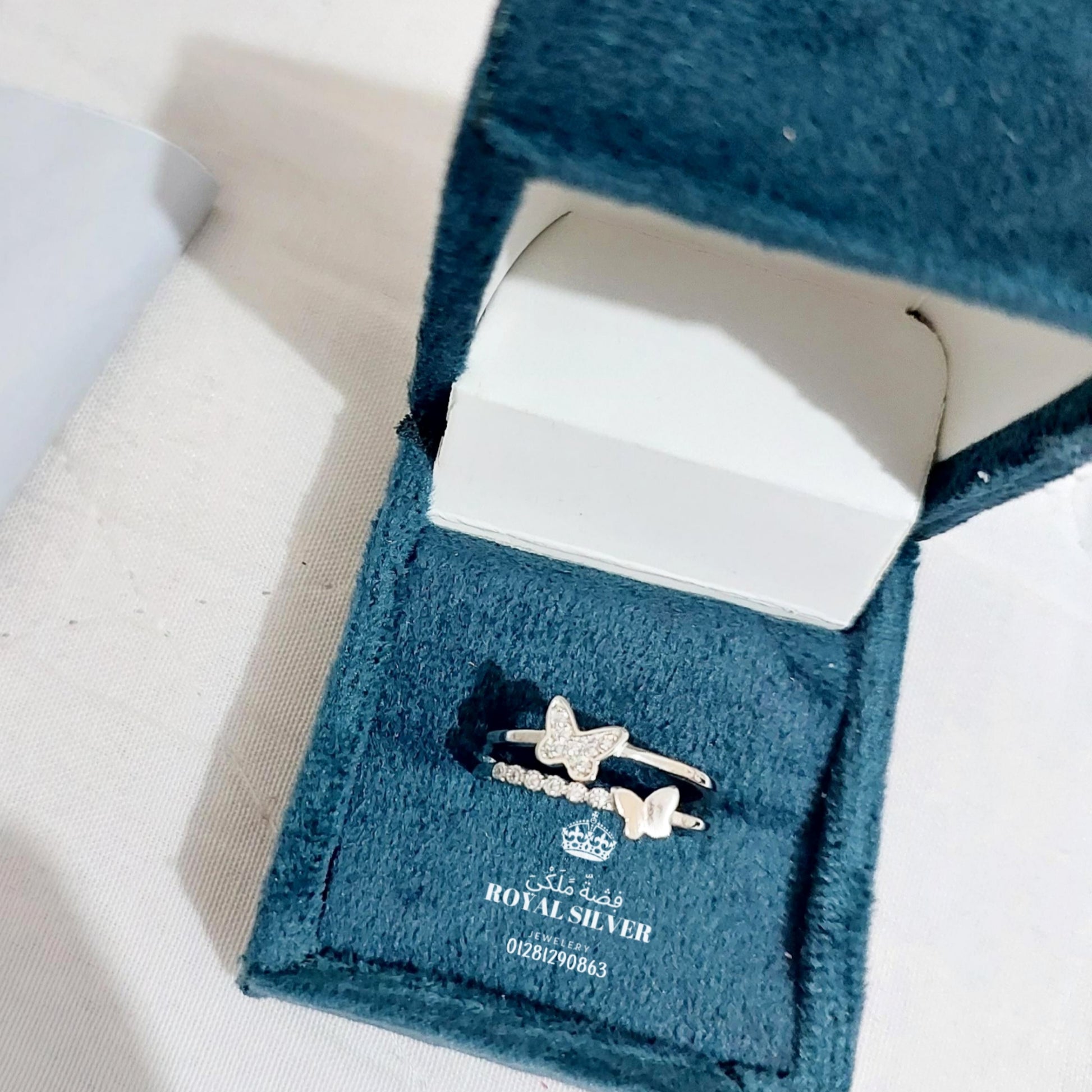 توينز فراشة أنيق مقاس حر يناسب جميع الأصابع، مرصع بزركون أبيض يشبه الماس