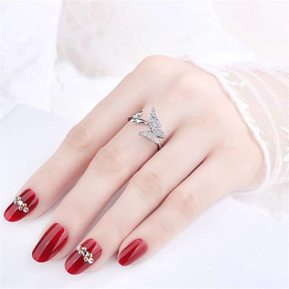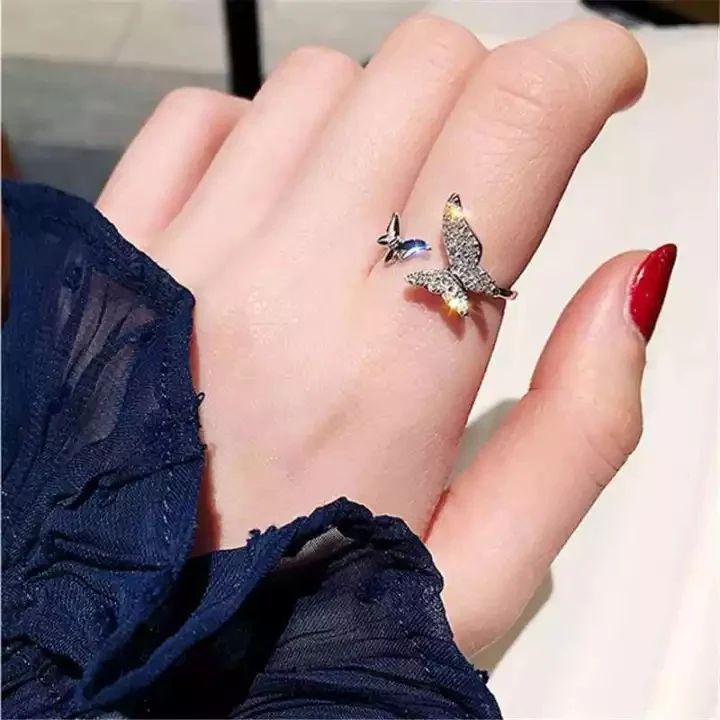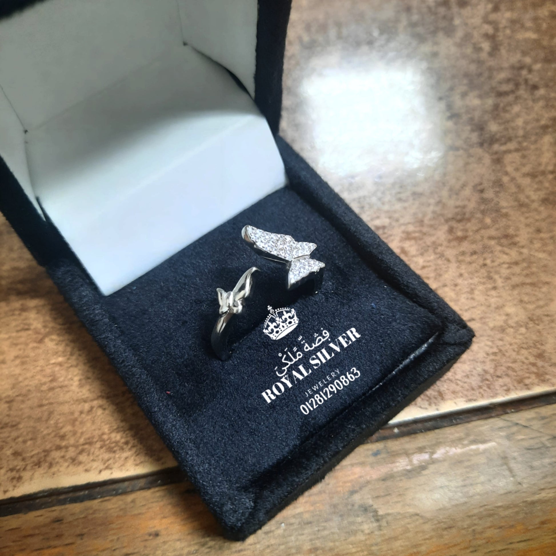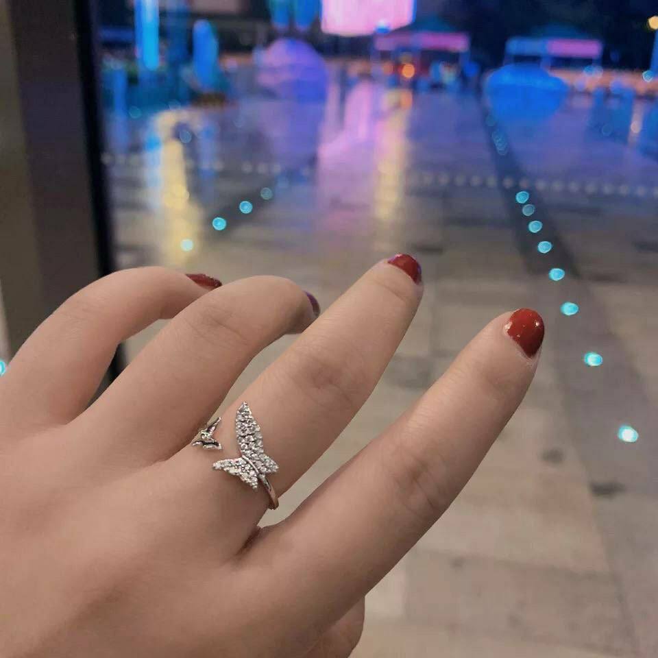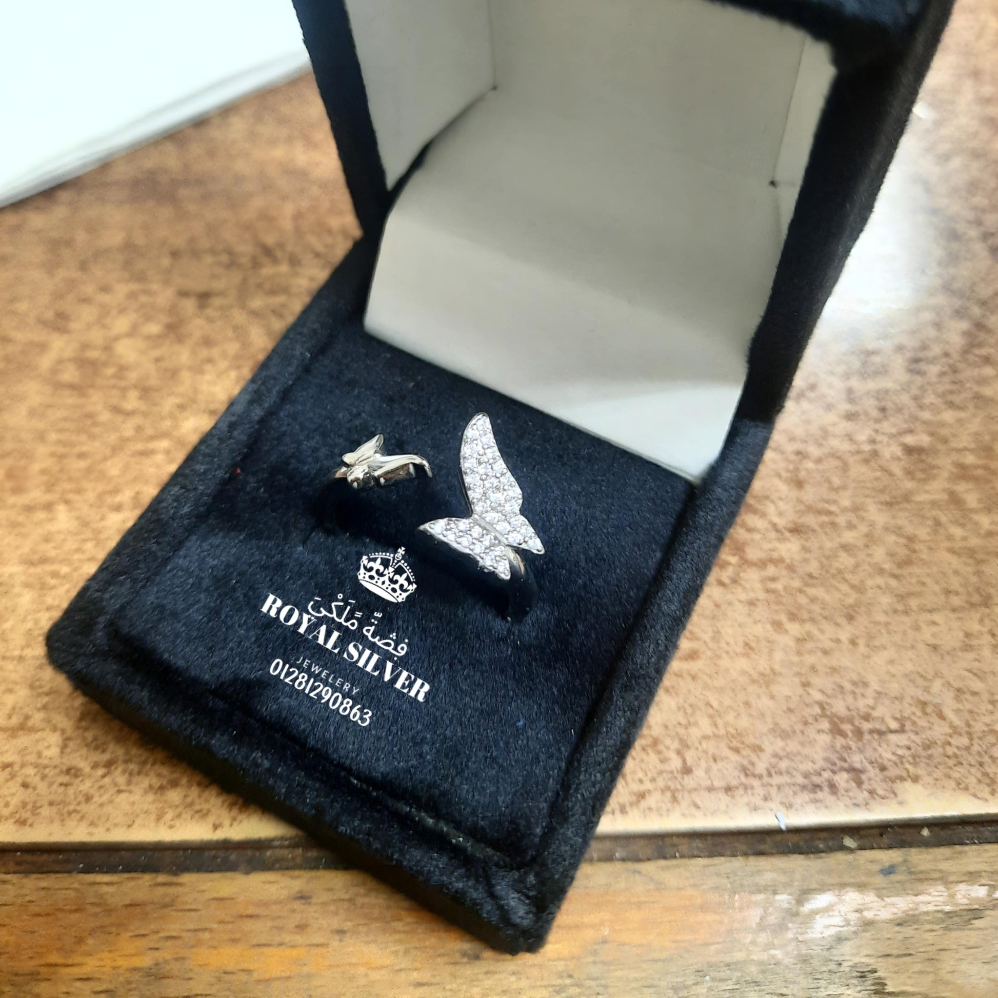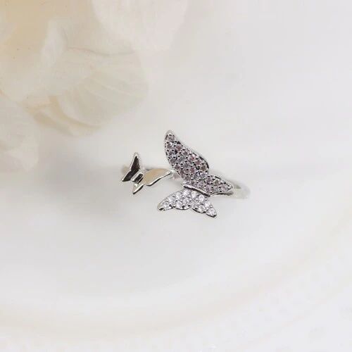 خاتم فراشة أنيق بمقاس حر مرصع بزيركون أبيض يشبه الماس