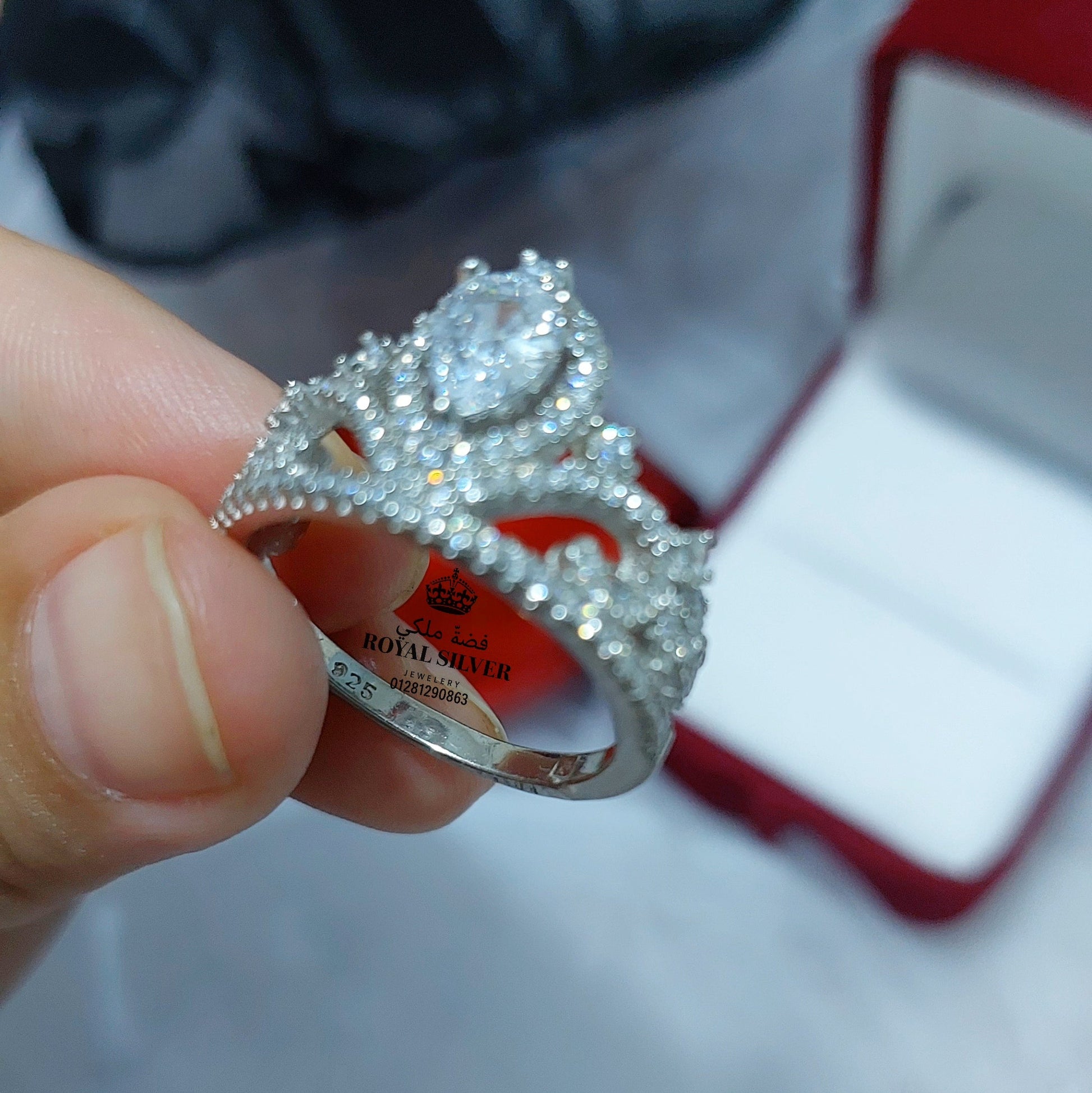 خاتم تاج أنيق مرصع بألماس أبيض شبيه بالزركون •