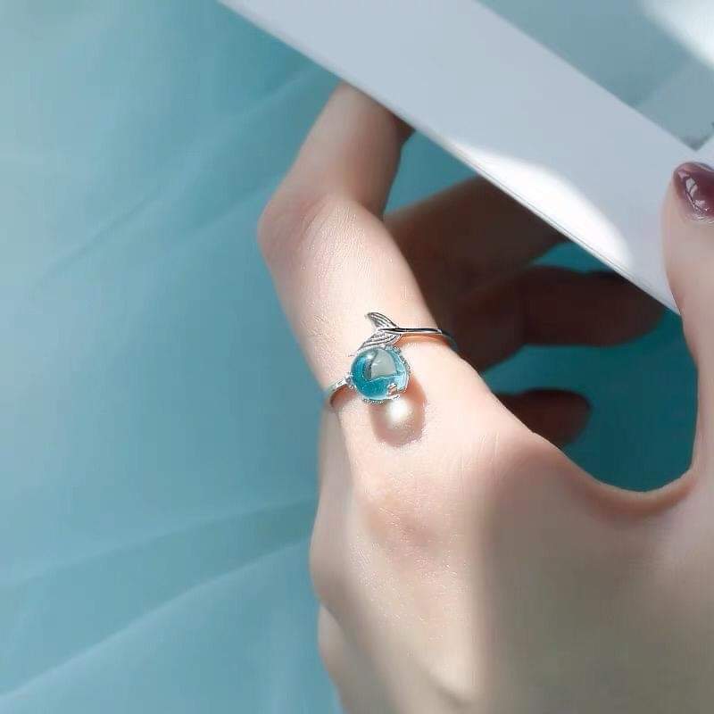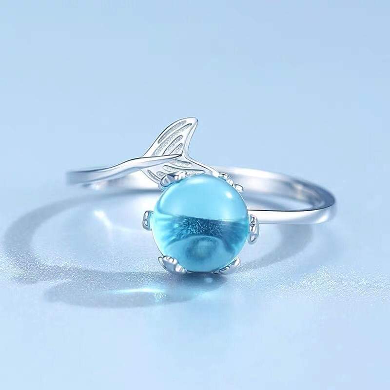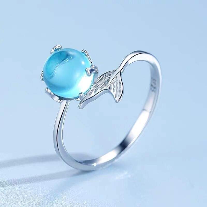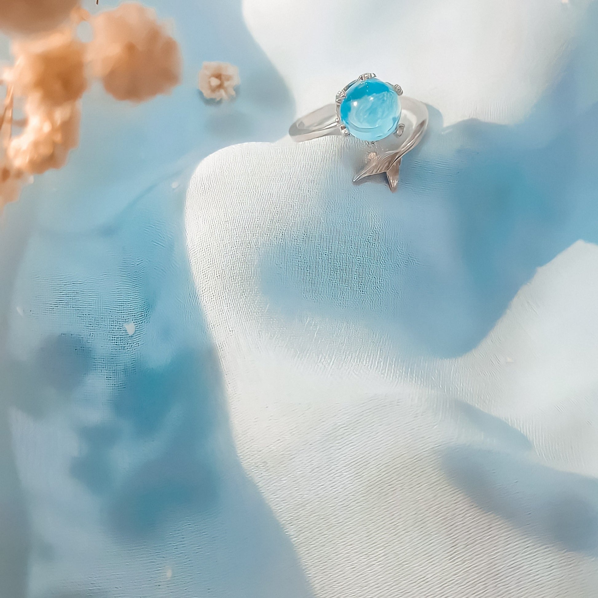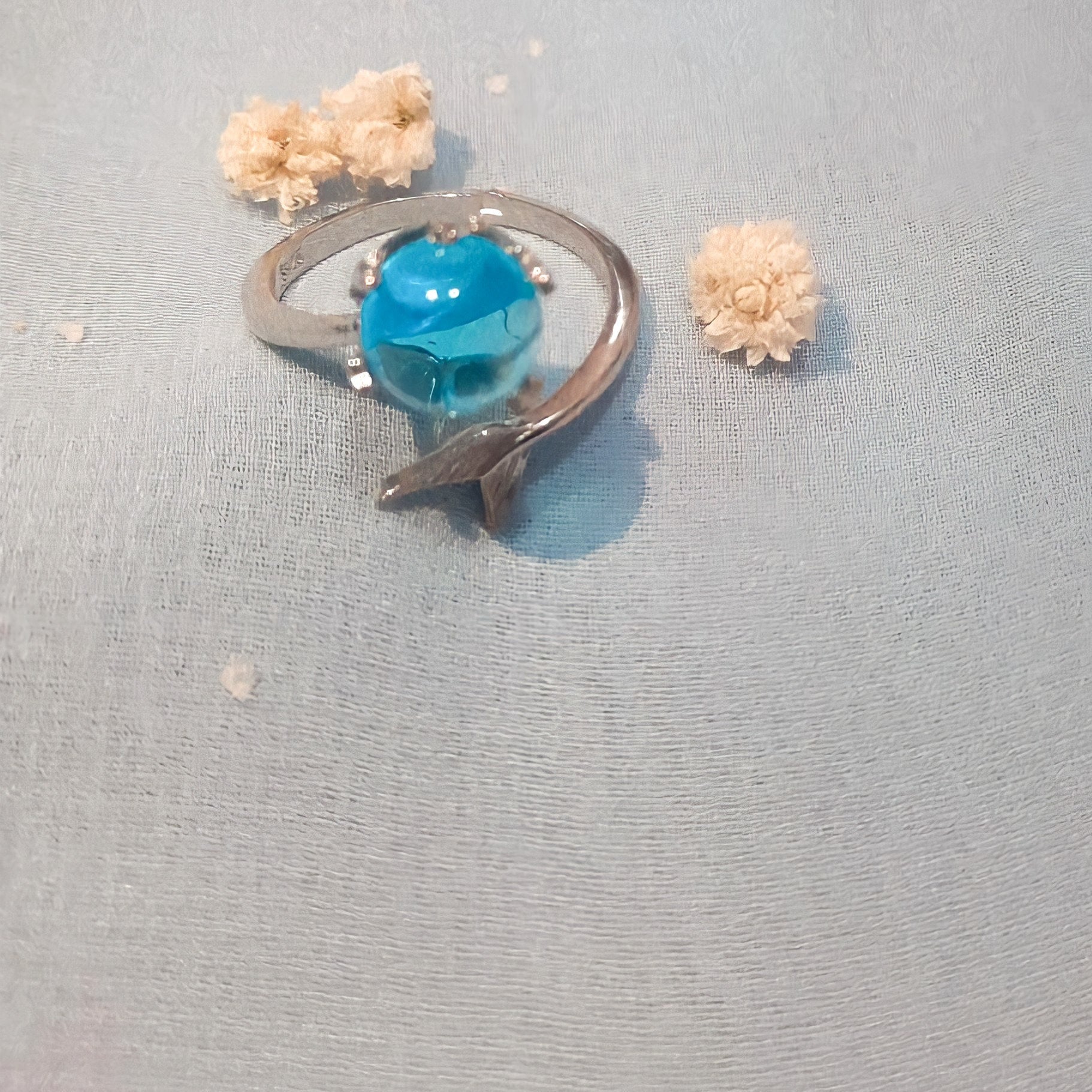 خاتم حورية البحر الأنيق (الدلفين) مقاس حر مرصع بزيركون أزرق بحري كامواج البحر