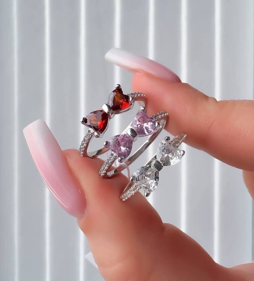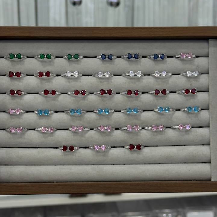 • خاتم أنيق على شكل عقدة مزين بأحجار زركون بيضاء باللون الوردي أو لون آخر.